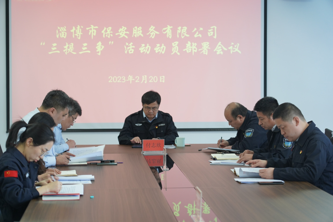 2月20日下午,淄博市保安服務(wù)有限公司召開黨委會議,學(xué)習(xí)全市“三提三爭”活動動員大會精神,傳達(dá)《市國資委黨委關(guān)于開展“三提三爭”活動的通知》要求,并對下一步工作進行研究部署。公司黨委班子全體成員參加會議,黨委書記、董事長付志欣主持會議。